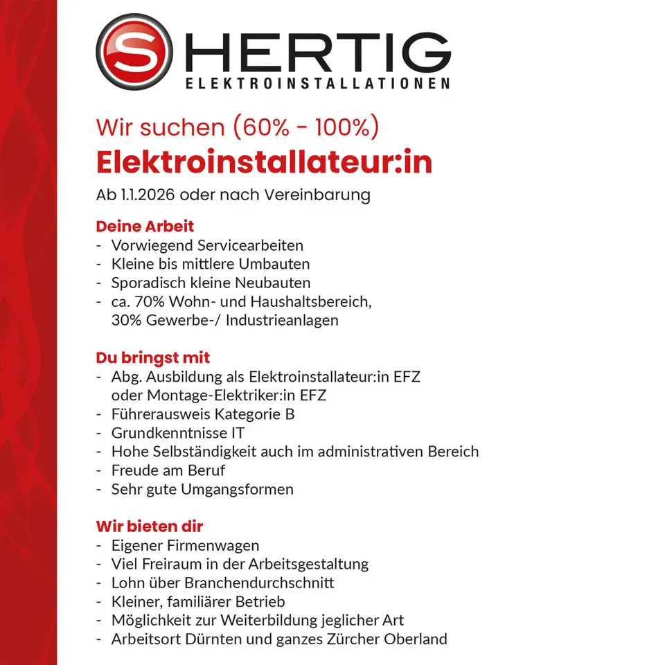 S Hertig Elektroinstallationen ist Ihr Ansprechpartner für alles, was mit Elektrizität zu tun hat.